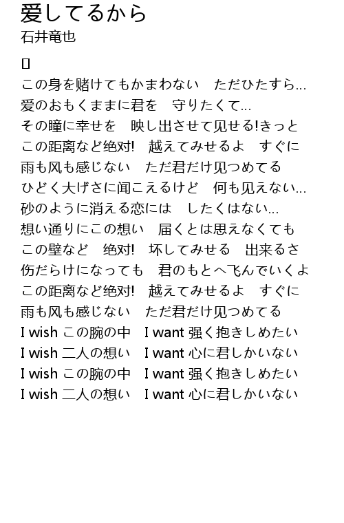 | I wish この腕の中 I want 强く抱きしめたい | |