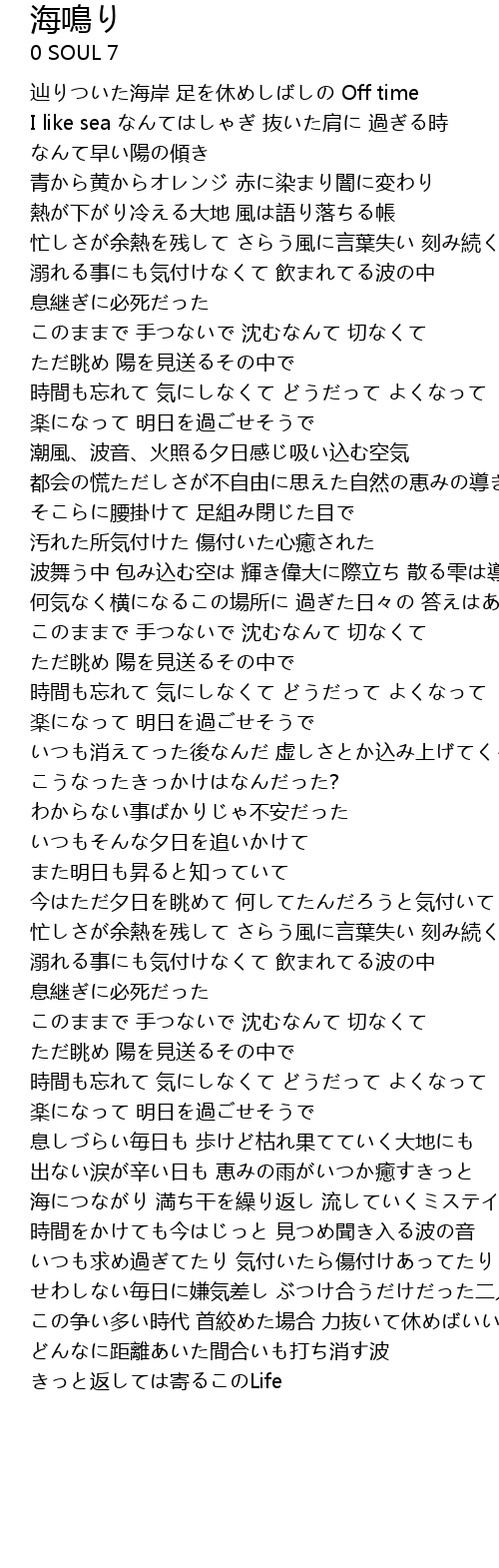 | 波舞う中 包み込む空は 輝き偉大に際立ち 散る雫は導き | |