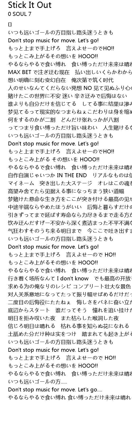 | 歌曲 | Stick It Out |