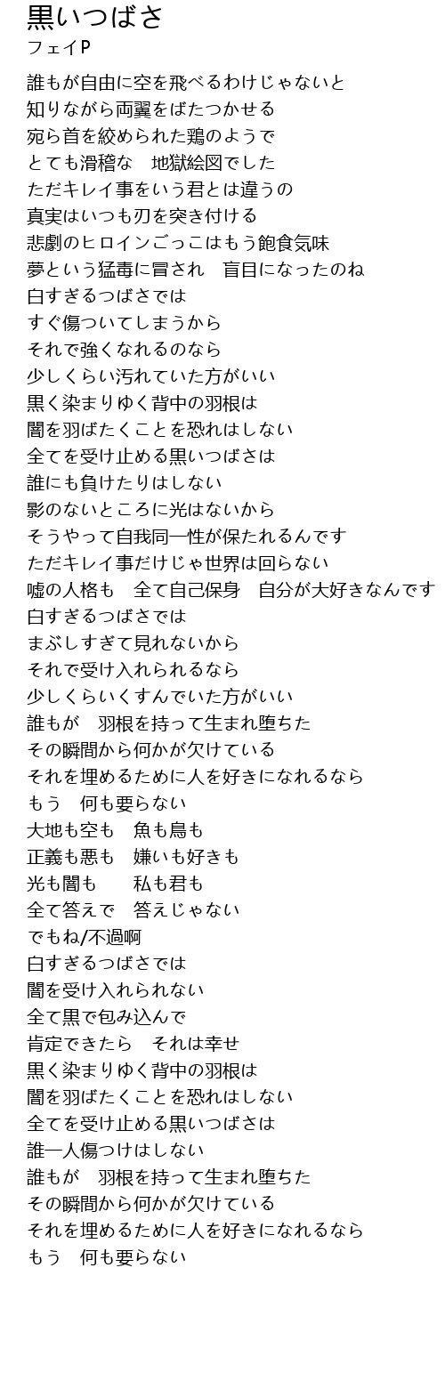 | [03:36.85] | 黒く染まりゆく背中の羽根は |