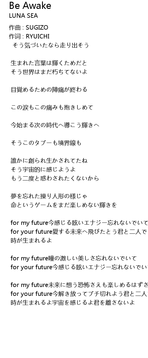 | for my future未来に想う恐怖さえも楽しめるはずさ | |