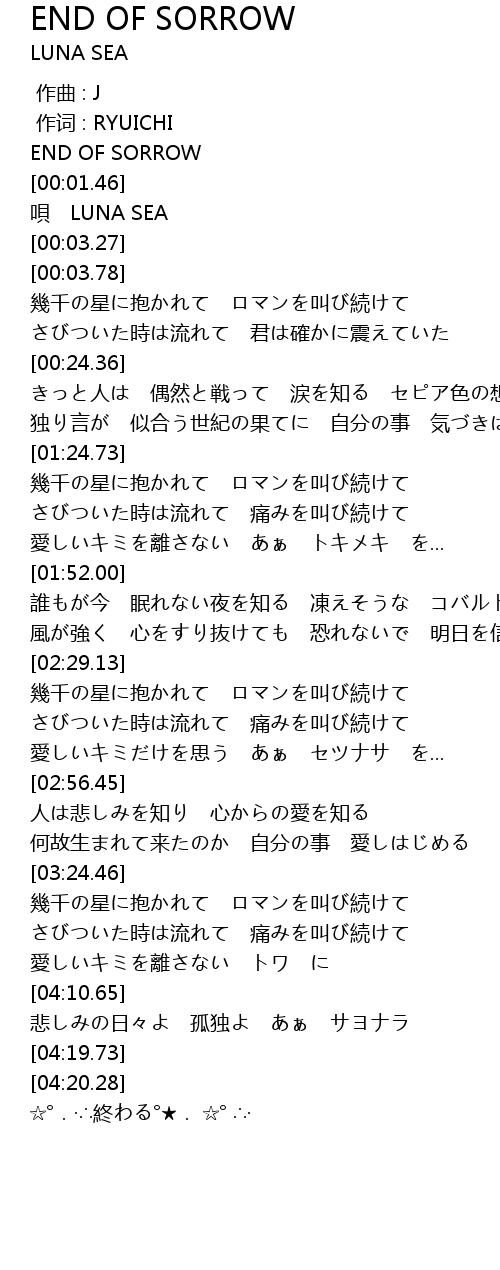 | [00:00.10] | END OF SORROW |