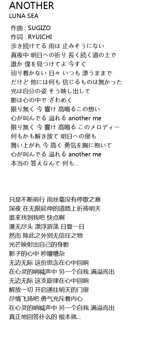 | [03:07.106] | 心が叫んでる 溢れる another me |