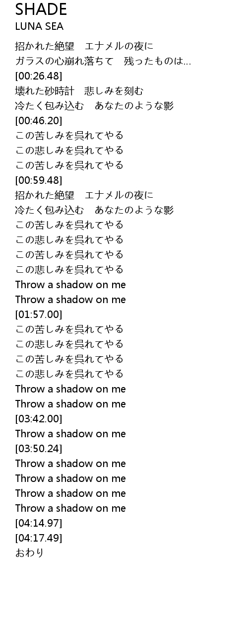 | [00:37.43] | 冷たく包み込む あなたのような影 |