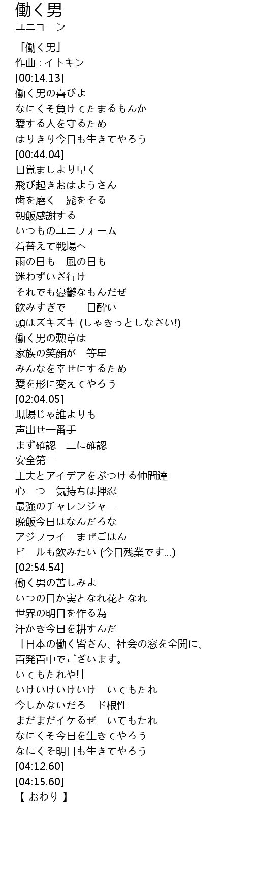| [00:01.13] | 「働く男」 |