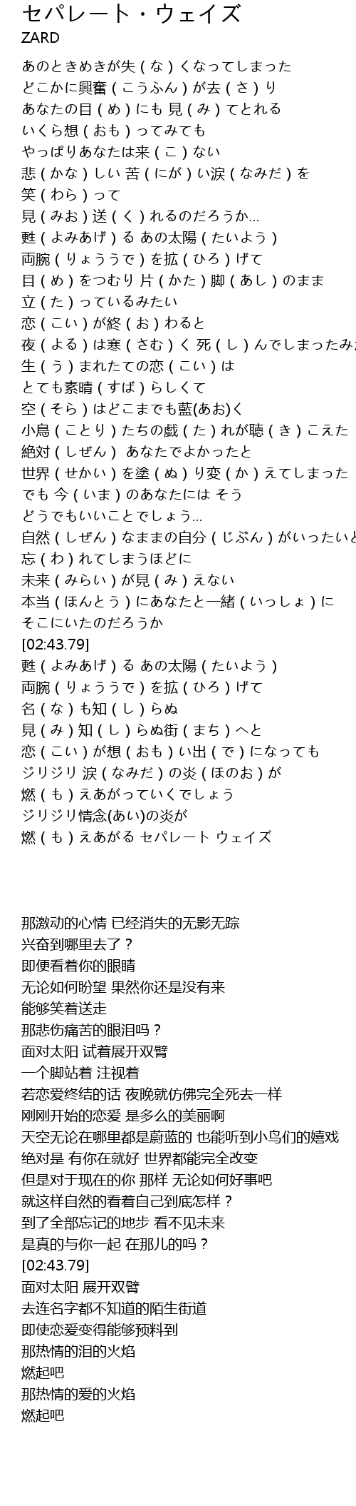 | [03:37.41] | 燃(も)えあがる セパレート ウェイズ |