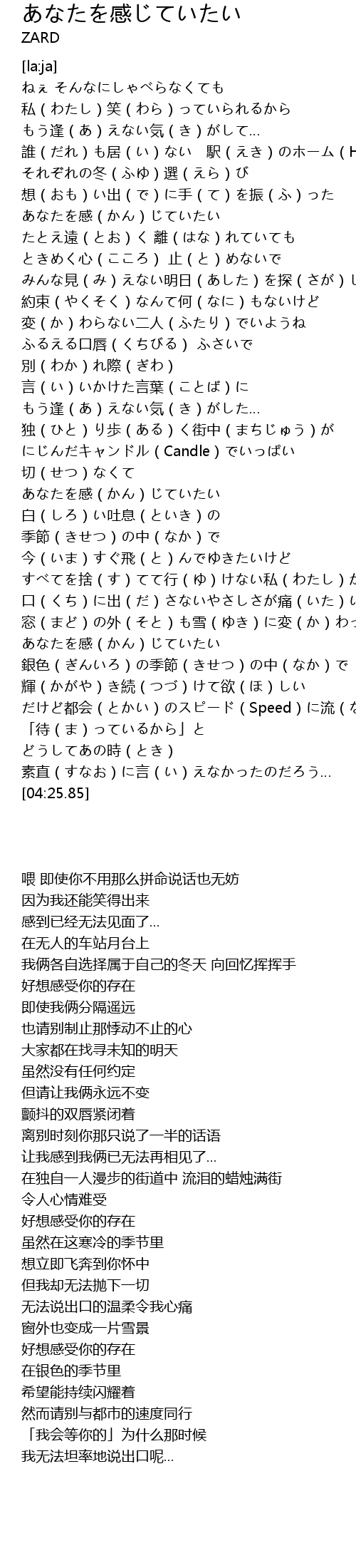 | [01:19.06] | たとえ遠(とお)く 離(はな)れていても |
