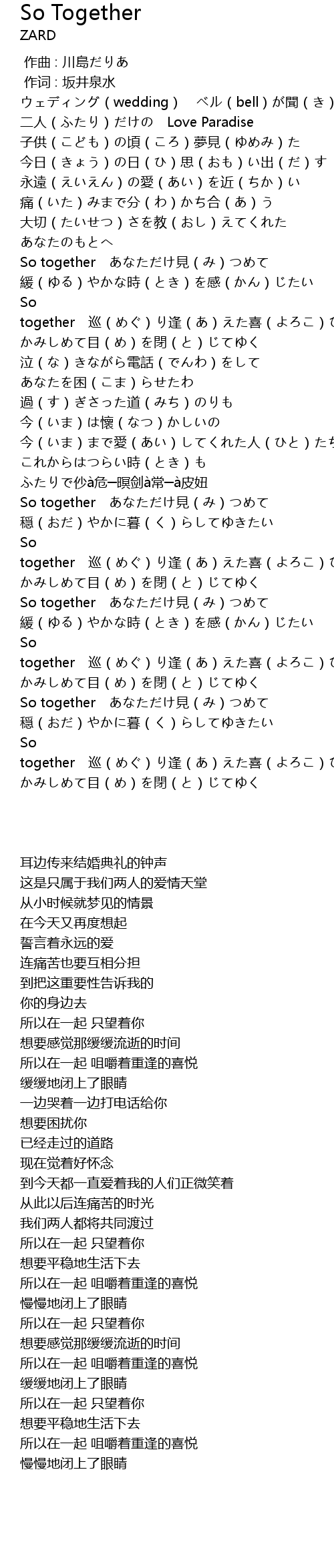 | [00:01.00] | 作词 : 坂井泉水 |