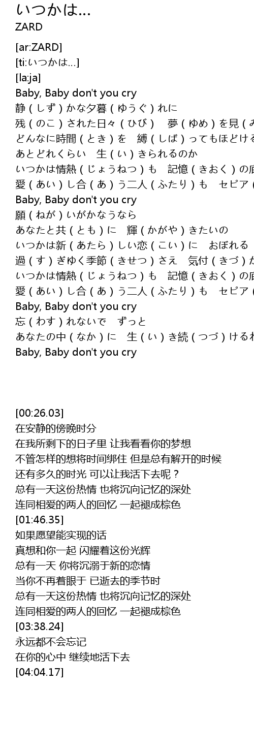| [04:04.17] | Baby, Baby don't you cry |