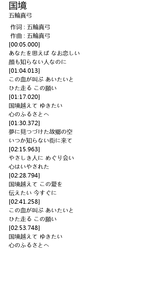 | [01:53.272] | 夢に見つづけた故郷の空 |