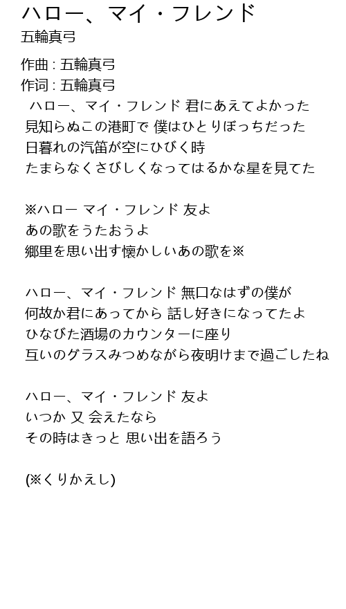 | ハロー、マイ・フレンド 君にあえてよかった | |