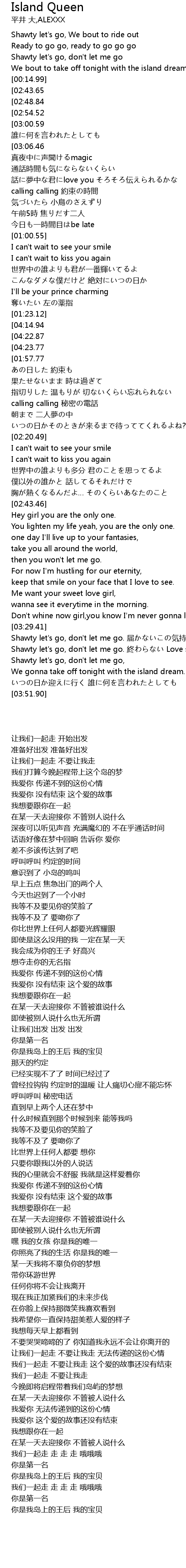 | [04:35.41][04:23.77][01:55.11] | You are my Island queen my baby! |