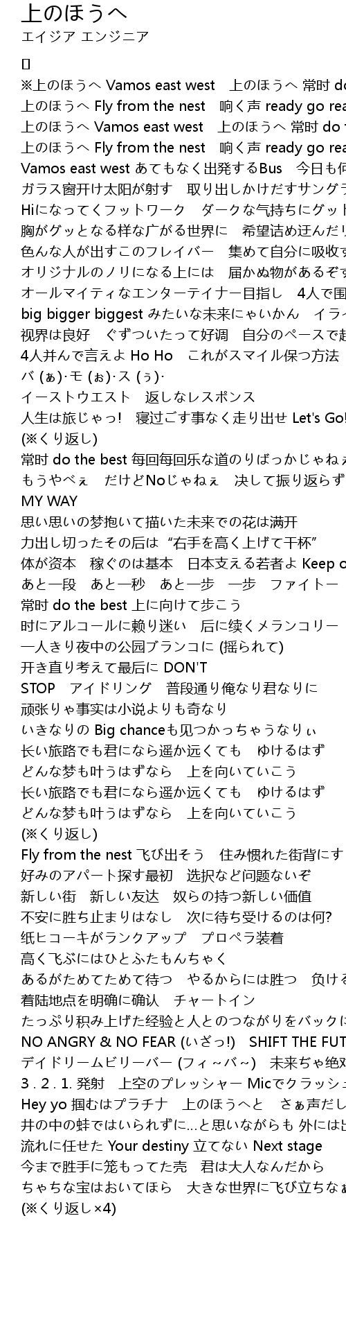 | 上のほうへ Vamos east west 上のほうへ 常时 do the best | |