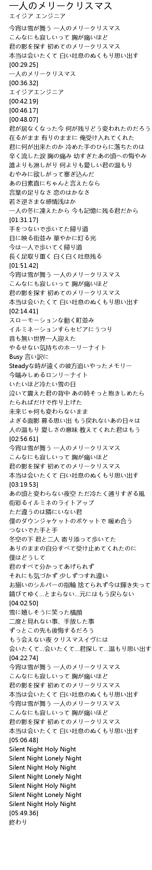 | [00:31.14] | 一人のメリークリスマス |