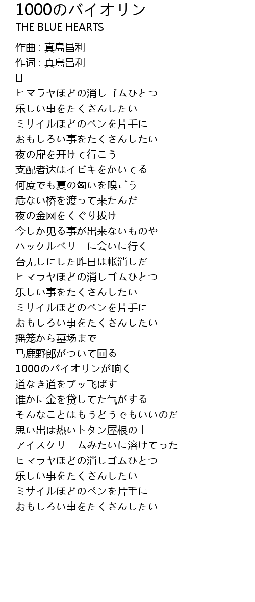 | 歌曲 | 1000のバイオリン |