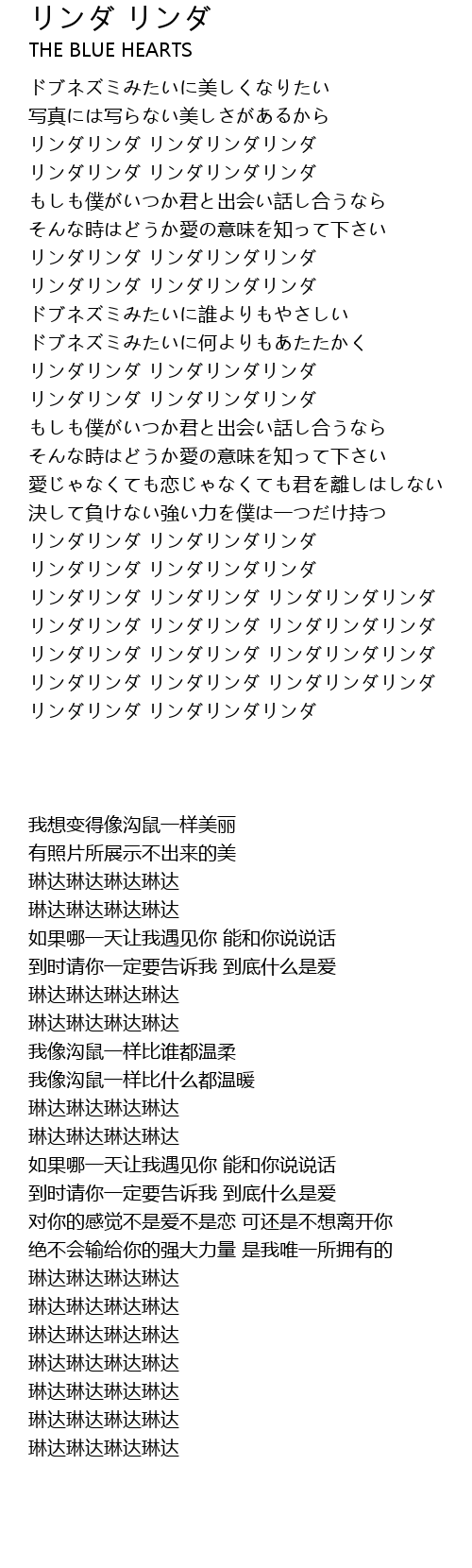 | [01:09.800] | リンダリンダ リンダリンダリンダ |