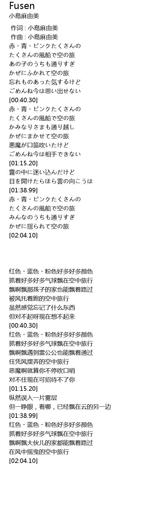 | [00:00.000] | 作词 : 小島麻由美 |