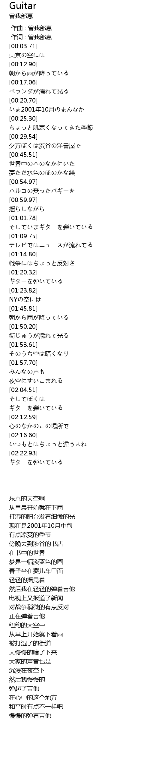 | [02:10.84] | ギターを弾いている |