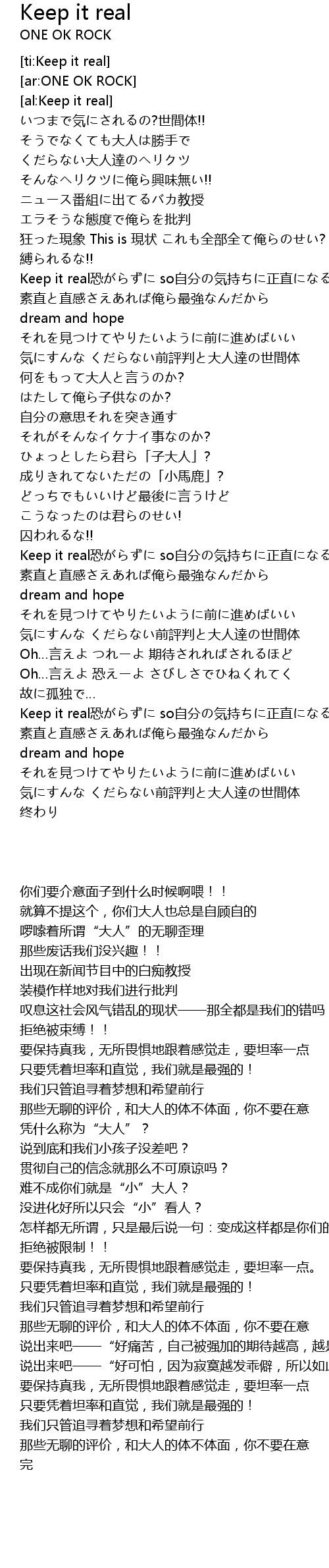 | [00:44.74] | Keep it real kǒng so zì fēn qì chí zhèng zhí |