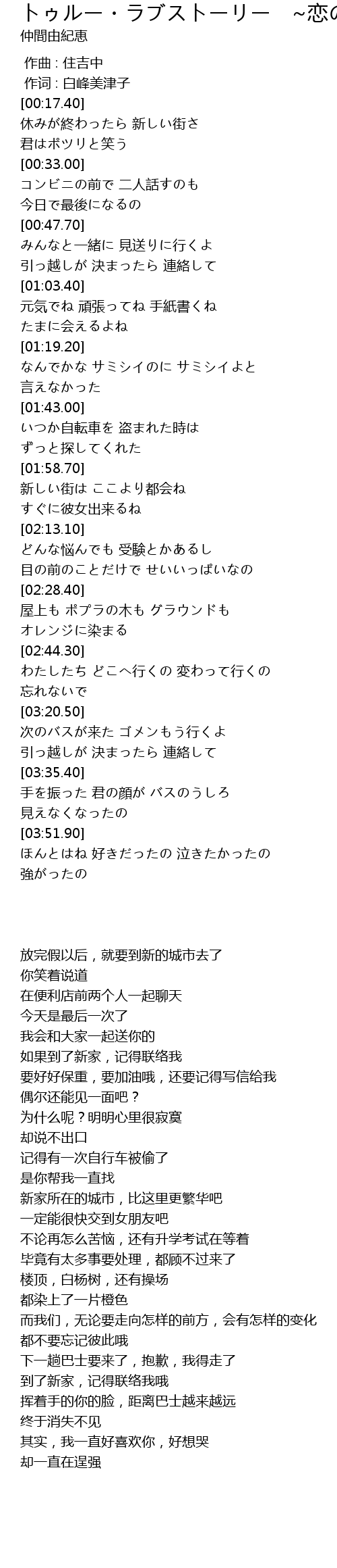 | [00:17.41] | 休みが終わったら 新しい街さ |