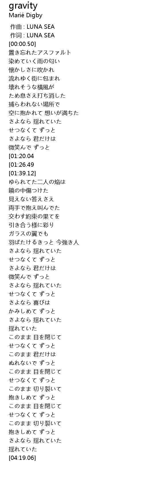 zuò qǔ : LUNA SEA |