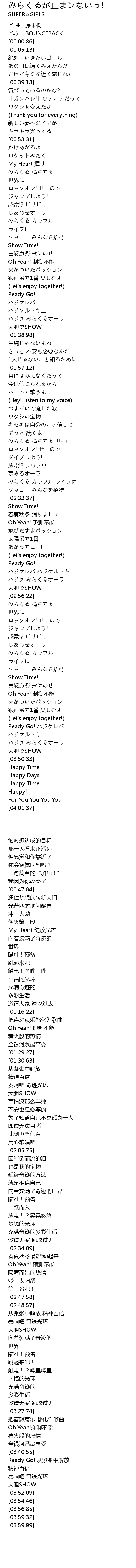 | [00:56.83] | My Heart 輝け |