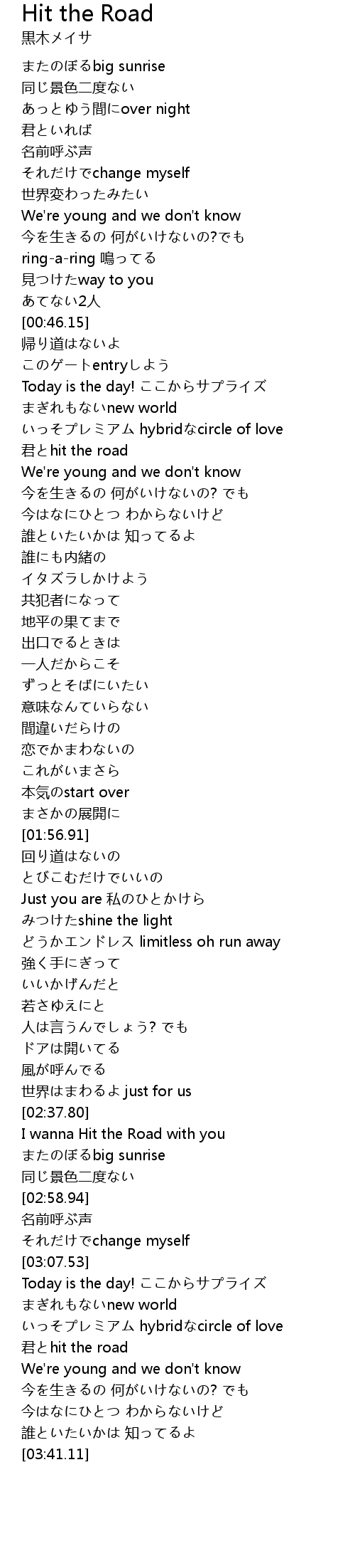 | [02:37.95] | I wanna Hit the Road with you |