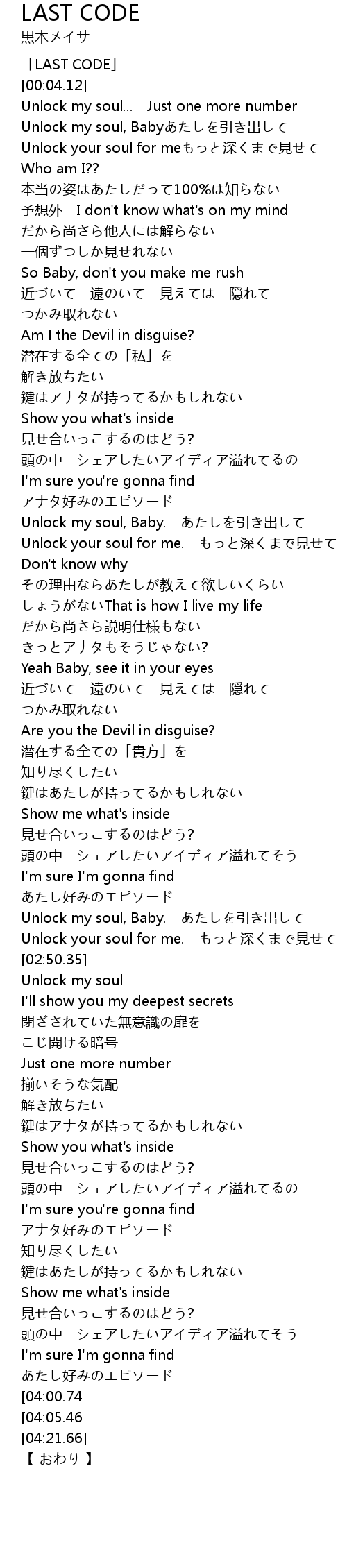 | [02:40.66] | Unlock my soul, Baby. あたしを引き出して |