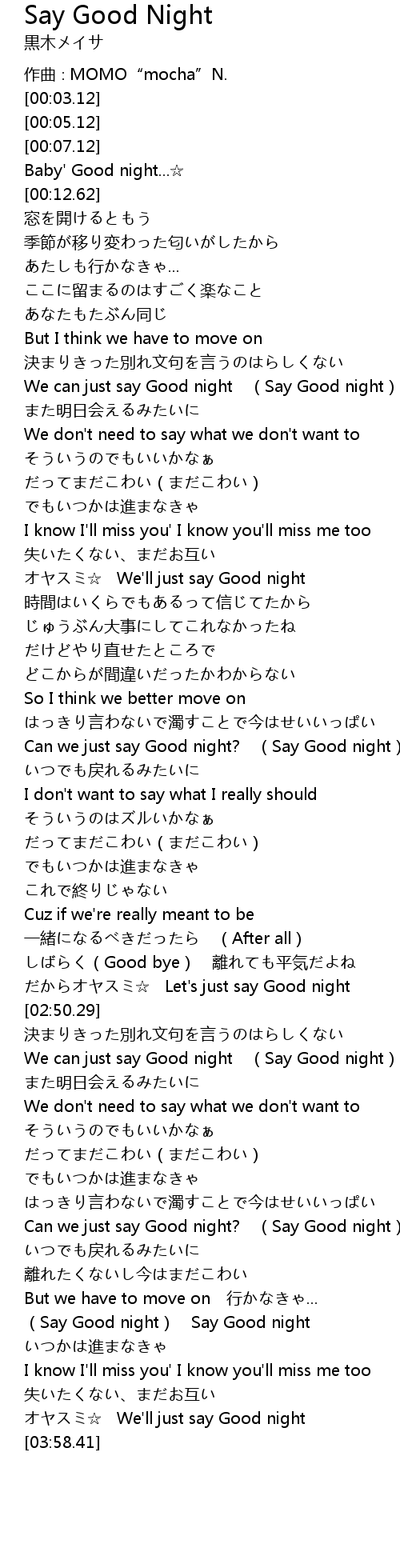 | [03:38.33] | Say Good night Say Good night |