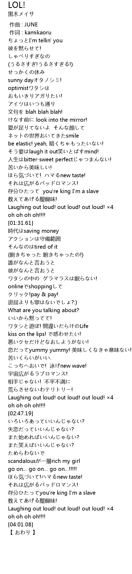 | [02:31.56] | Laughing out loud! out loud! out loud! 4 |