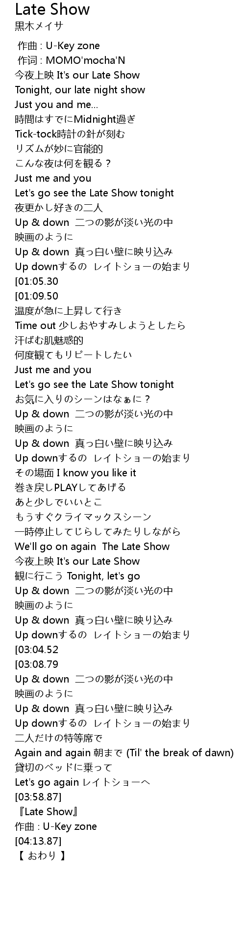 | [00:59.70] | Up downするの レイトショーの始まり |