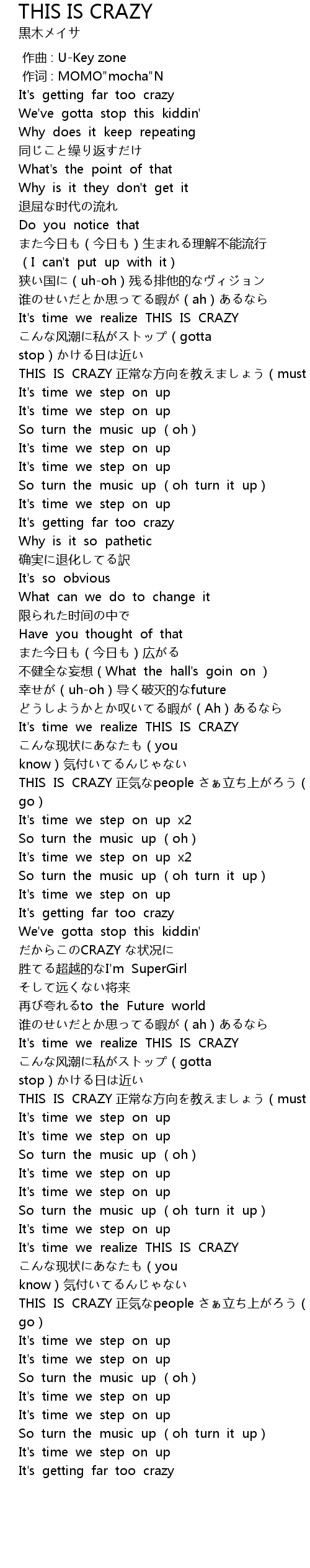 | [02:00.80] | THIS IS CRAZY 正気なpeople さぁ立ち上がろう(gotta go) |