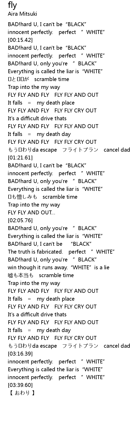 | [03:06.65] | FLY FLY AND FLY FLY FLY CRY OUT |
