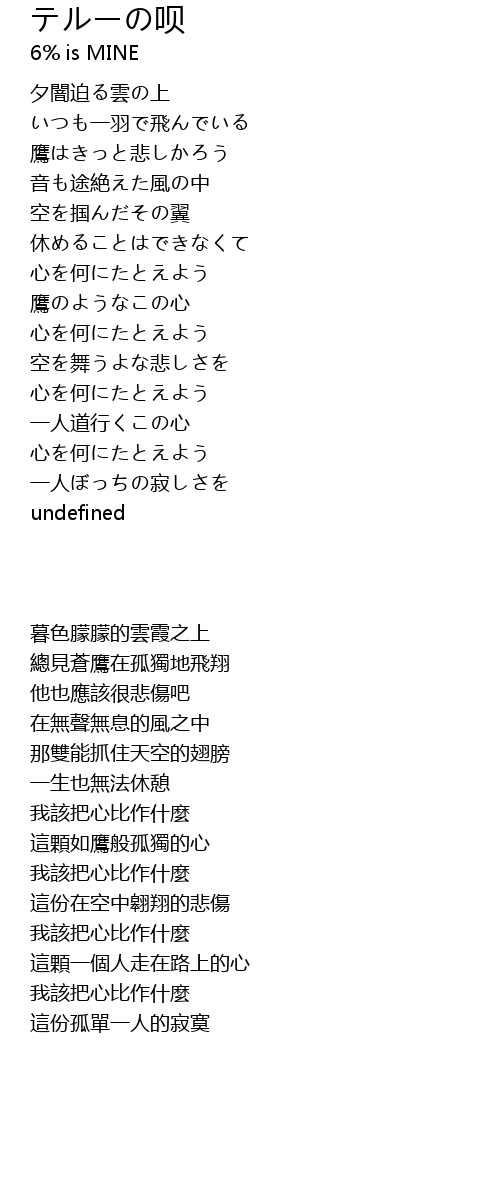 | [00:20.29] | 總見蒼鷹在孤獨地飛翔 |