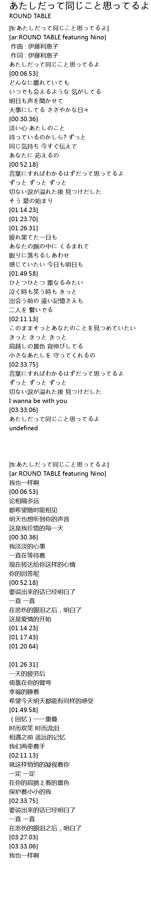 | 歌曲 | あたしだって同じこと思ってるよ |