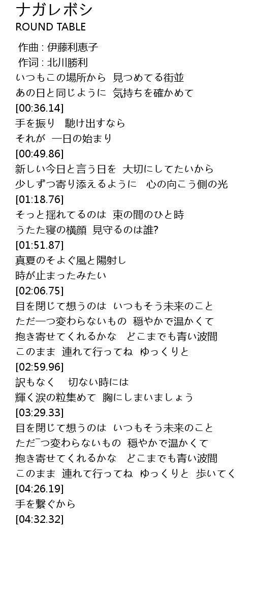 | [02:48.38] | このまま 連れて行ってね ゆっくりと |