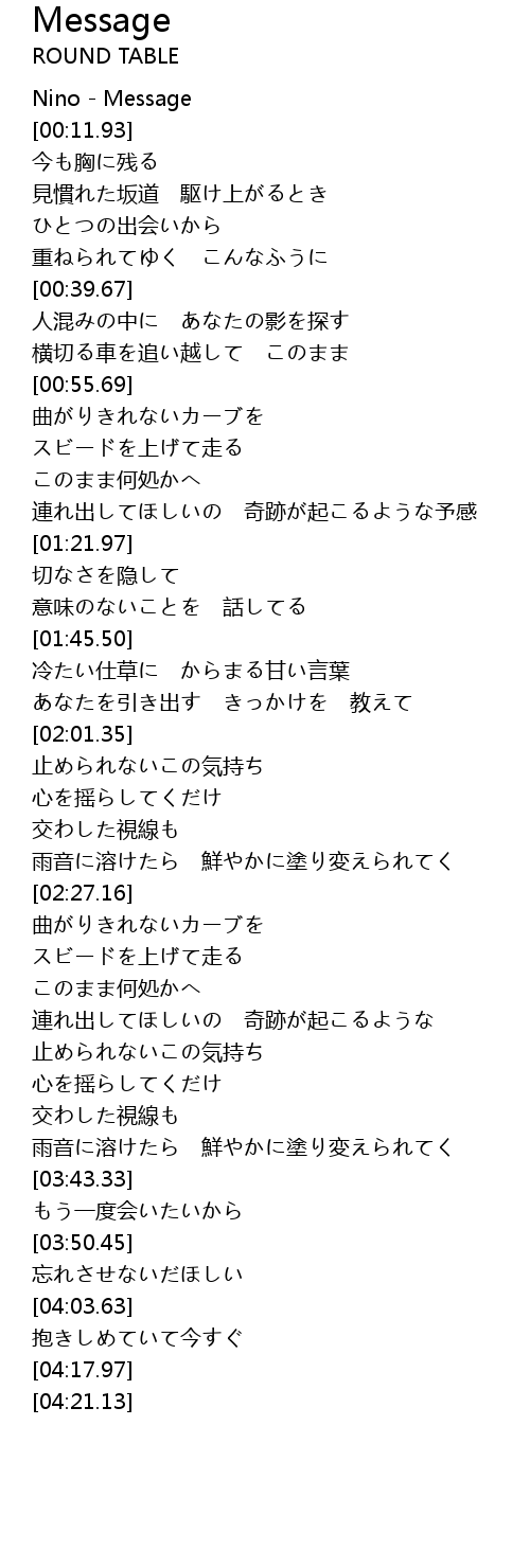 | [03:12.22] | 連れ出してほしいの 奇跡が起こるような |