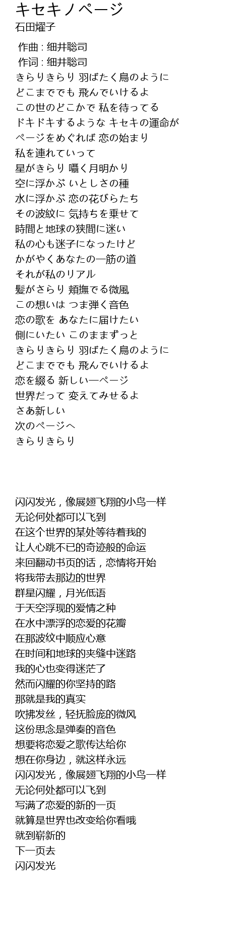 | [00:00.00] | きらりきらり 羽ばたく鳥のように |
