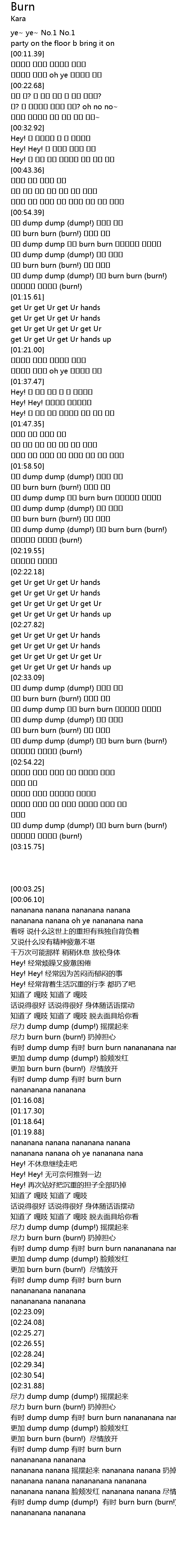 | [03:13.00] | 난나난나나 난난난나 (burn!) |