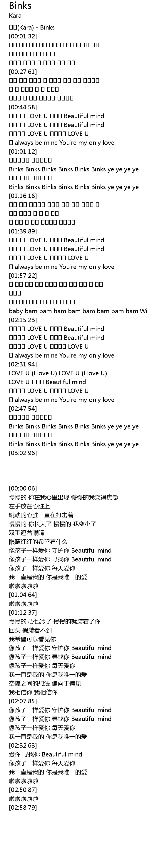 | [00:00.06] | 카라(Kara) - Binks |