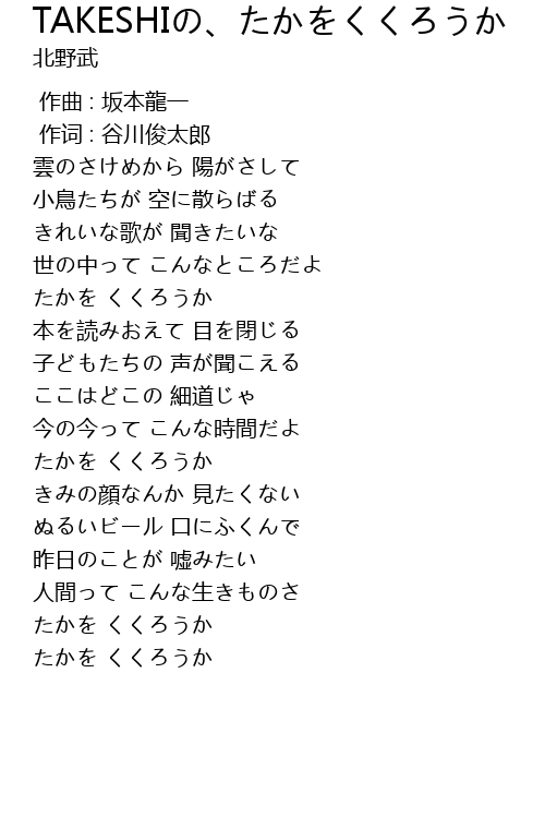 | [00:01.00] | 作词 : 谷川俊太郎 |