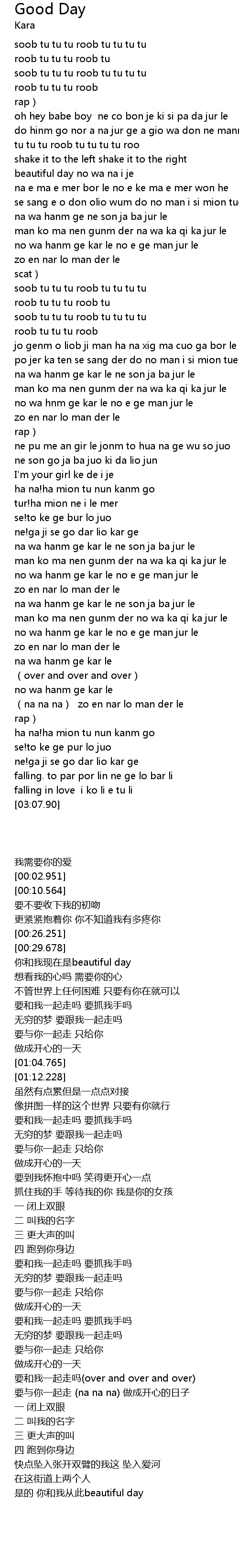 | [03:06.585] | 是的 你和我从此beautiful day |