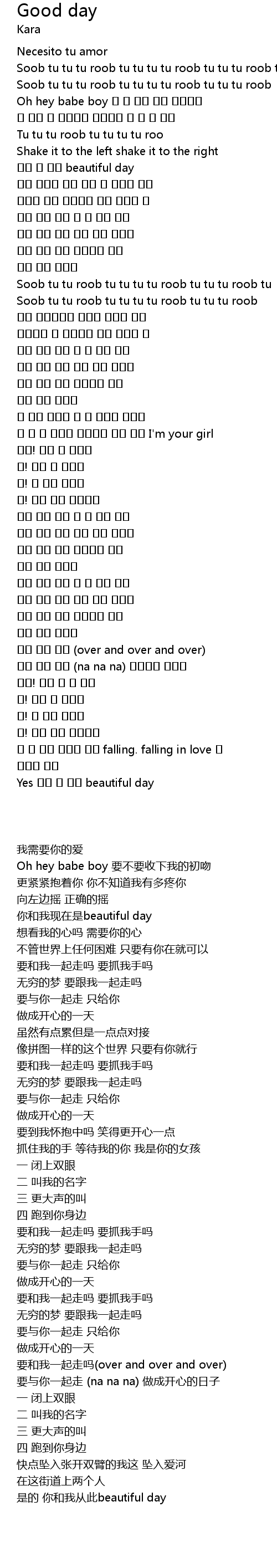 | [00:31.210] | 너와 나 이제 beautiful day |