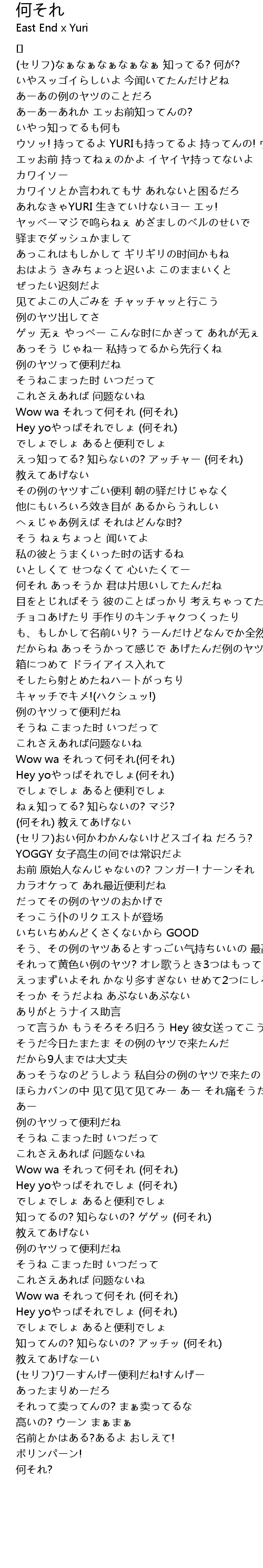 | (セリフ)なぁなぁなぁなぁなぁ 知ってる? 何が? | |