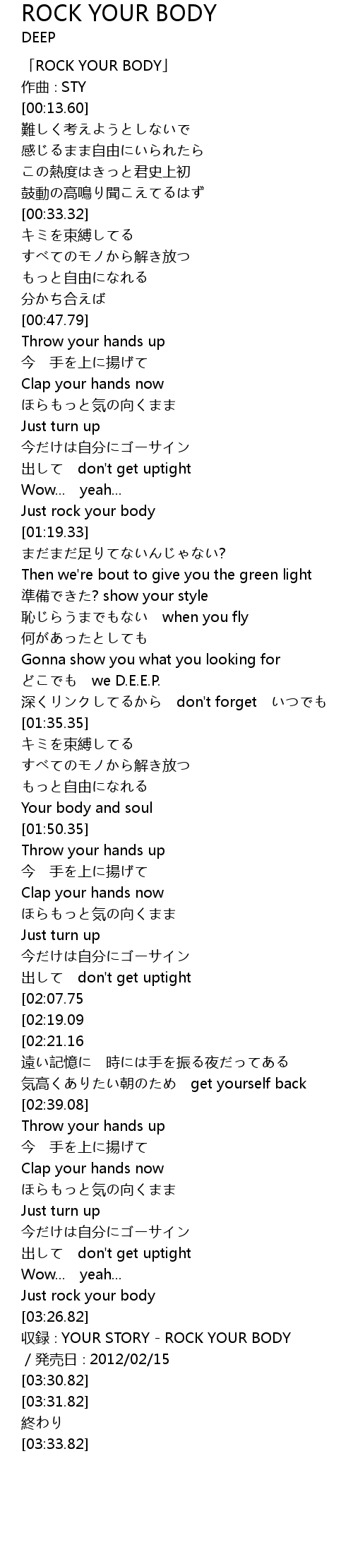 | [00:01.60] | 「ROCK YOUR BODY」 |