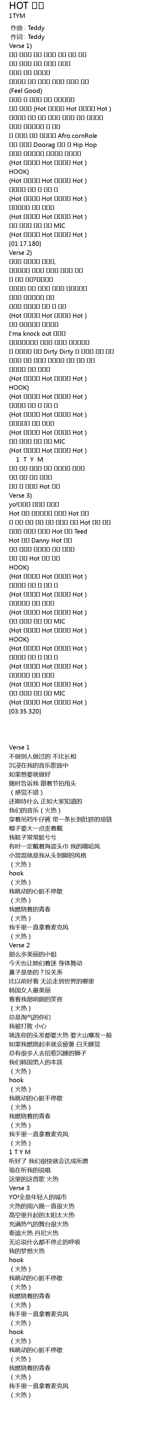| [01:35.650] | (Hot 뜨거뜨거 Hot 뜨거뜨거 Hot ) |