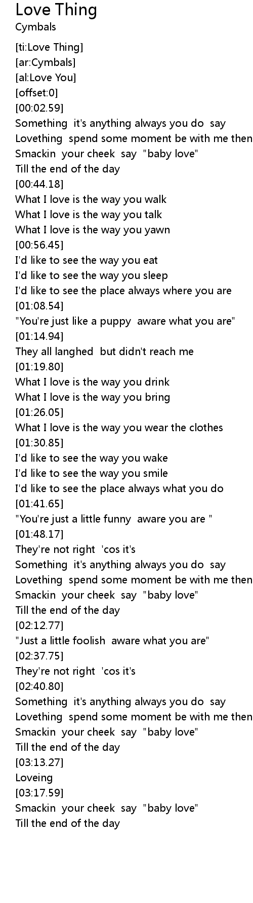| [00:33.81] | Smackin your cheek say "baby love" |