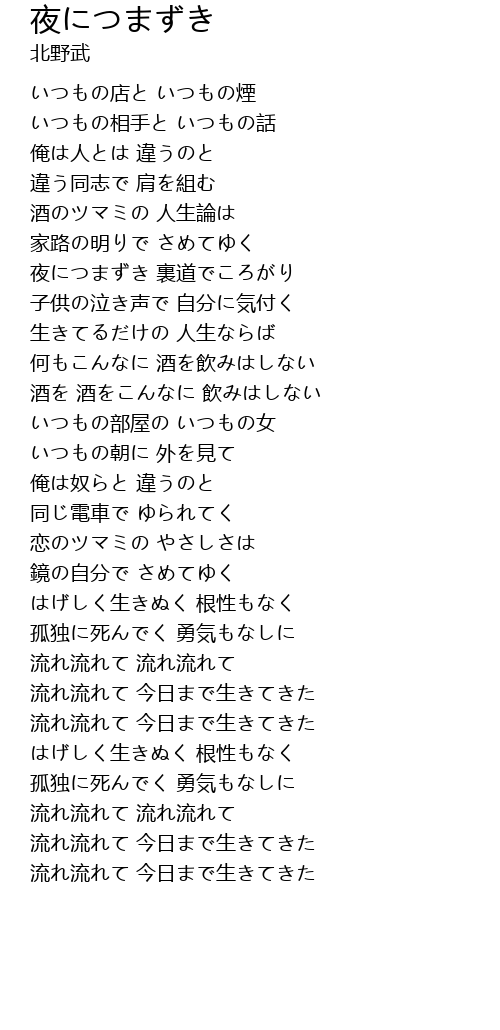 | [01:04.51] | 夜につまずき 裏道でころがり |