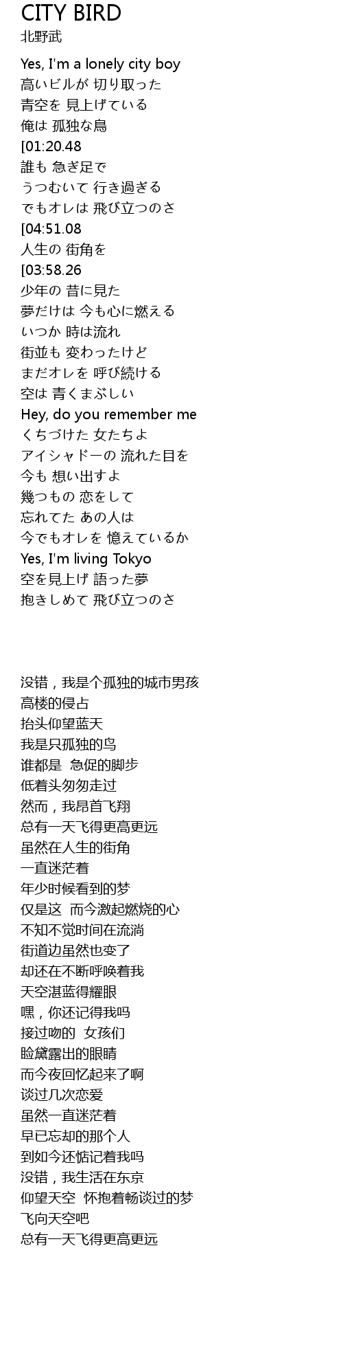 | [00:16.76] | Yes, I'm a lonely city boy |