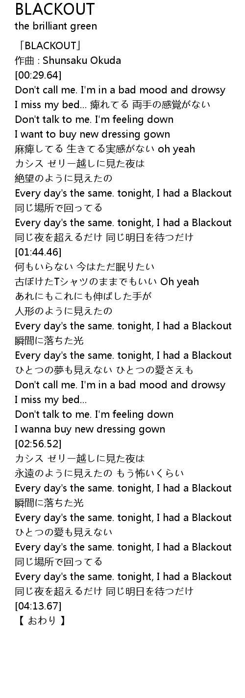 | [03:38.44] | Every day's the same. tonight, I had a Blackout |